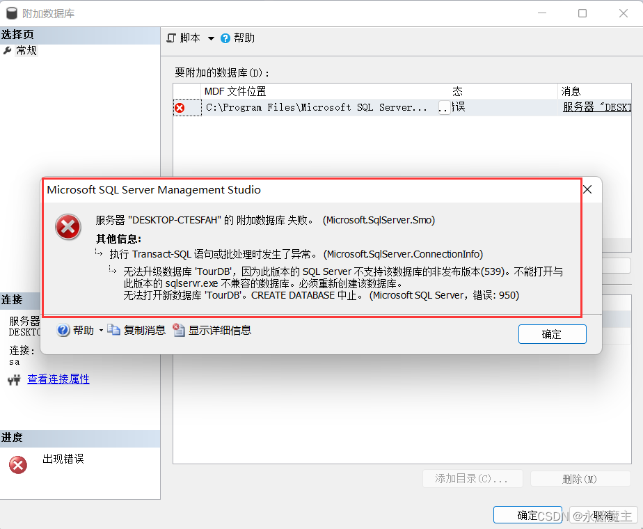 - 1.常見的無法附加數據庫時,出現的錯誤