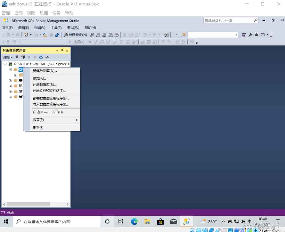 在虛擬機中的Sql Server中完成附加,我這里是Sql Server2019,所以在虛擬中安裝的是Sql Server2008。