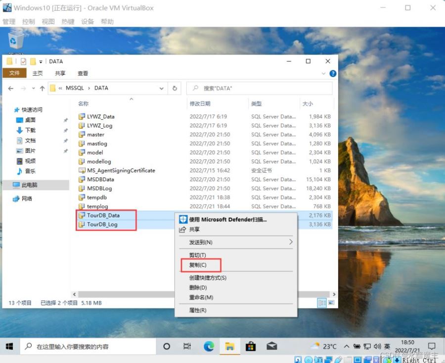 在虛擬機中找到剛才的數據庫文件,將它們粘貼到本機,在本機重新附加。