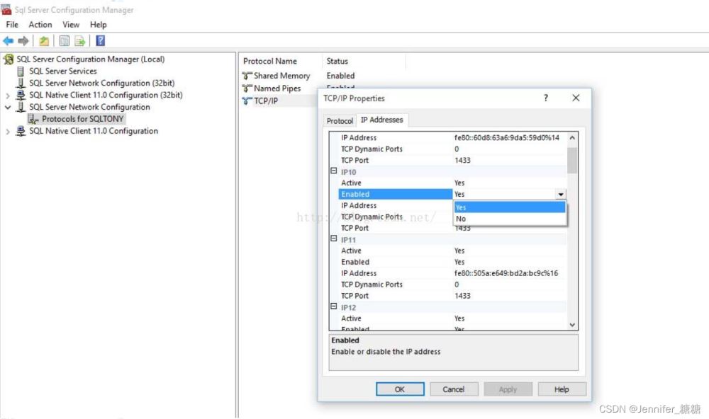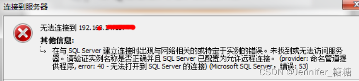 于是在網站上搜索解決方案,基本上都是說在 SQLServer的管理配置界面設置一下,TCP/IP的端口即可。也的確如此;但是我配置完端口之后,依舊無法正常連接。