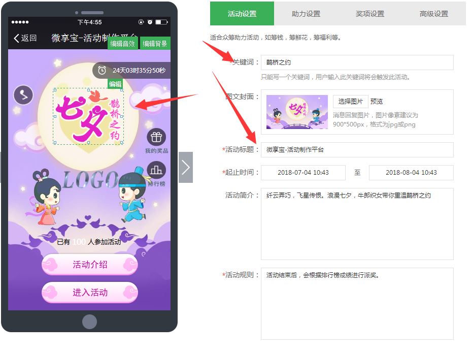 微信公眾號平臺怎么制作一個七夕情人節營銷活動