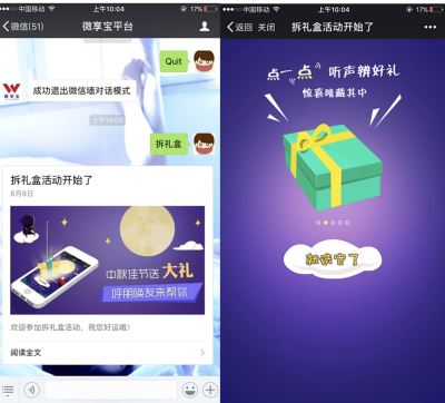 四. 兒童節(jié)拆禮盒活動:粉絲拆開商家送出的禮盒,隨機中獎,還可以將活動分享給小伙伴,讓小伙伴幫忙。商家可根據(jù)“六一營銷需求設(shè)置獎品獎項、抽獎次數(shù)、分享次數(shù)等。拆禮盒應(yīng)用具有超強的傳播屬性,是“兒童節(jié)”營銷必不可缺的幫手。