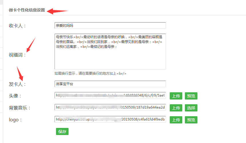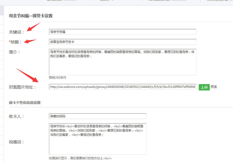 以上所述是小編給大家介紹的母親節微信公眾號賀卡活動制作方法,希望對大家有所幫助,如果大家有任何疑問請給我留言,小編會及時回復大家的。在此也非常感謝大家對網站的支持!