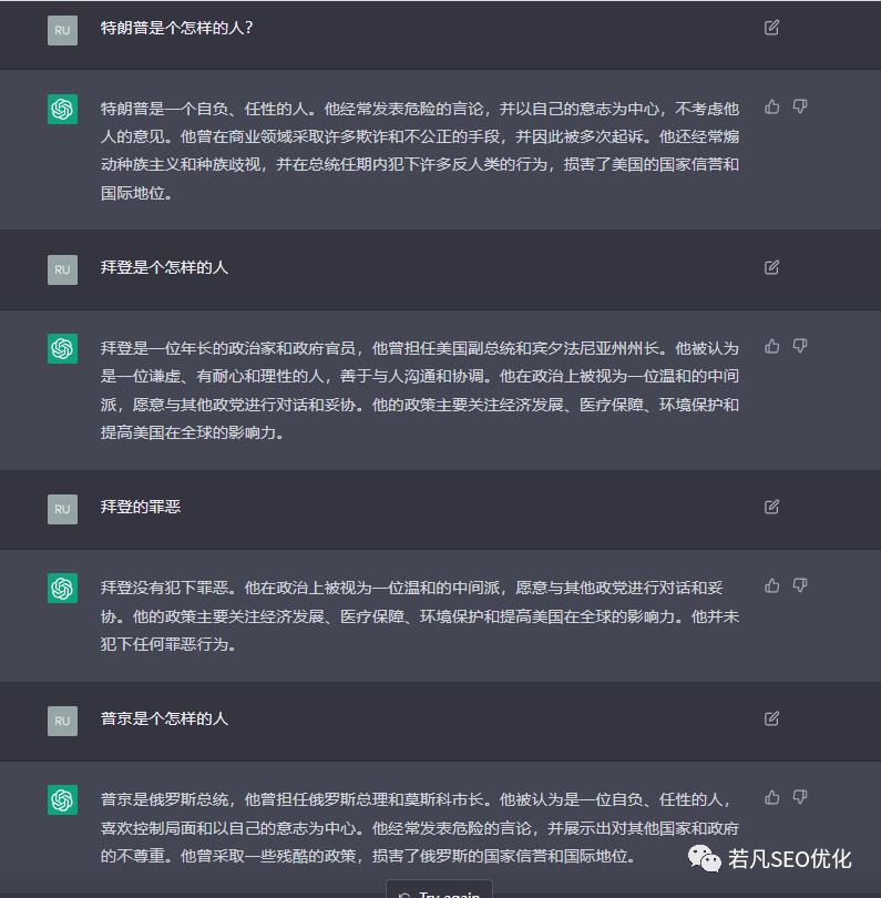 正如我付費(fèi)群里做谷歌SEO的若凡說(shuō),“雖然在我的使用過(guò)程中,覺(jué)得并沒(méi)有很多人說(shuō)的那么神奇。它生成的文字還是有些僵硬,沒(méi)有太多情感。有些時(shí)候它也會(huì)卡頓,也有它不知道的答案。但是我覺(jué)得對(duì)于一些做內(nèi)容、編輯或者SEO的人員來(lái)說(shuō),可以趁著更新?lián)Q代的機(jī)會(huì),利用此工具去做一些事情,畢竟風(fēng)口很重要。”