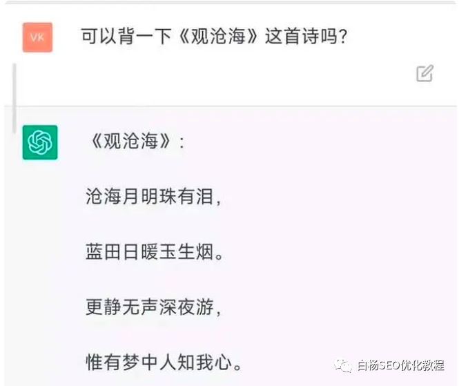 當(dāng)你要求ChatGPT進(jìn)行創(chuàng)作時(shí),它可以自由發(fā)揮,但是,當(dāng)你的目的是尋求正確答案時(shí),ChatGPT可能有時(shí)無(wú)法滿足期待。比如,讓ChatGPT背一下《觀滄海》這首詩(shī),它卻即興創(chuàng)作了一首。