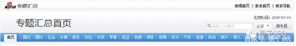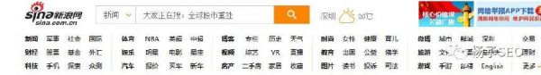 如果要問導航應該分布在哪些頁面上的話,從用戶的角度來審視這個問題就很不難,哪些頁面在訪問者訪問后,可能會產生進一步了解信息的沖動,那么這些頁面上就應該放置導航。簡單來說,除了完全沒有意義的中間過渡頁面外,網站的任何頁面都應該存在某種方式的導航。如下圖新浪首頁頂部導航: