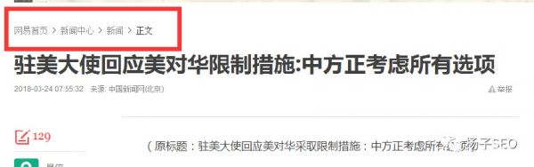 網易的內容頁導航都是放置在標題的上方如下圖所示: