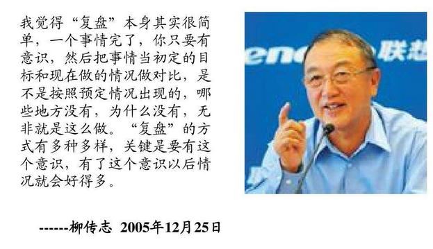 圖片一:聯(lián)想柳傳志對復盤方法論的高度認可