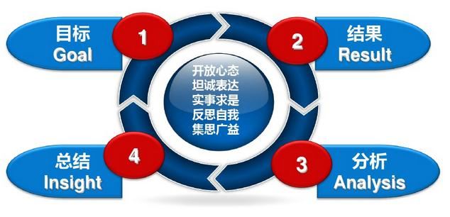 第一個步驟—回顧目標:當初的目的或期望是什么; 第二個步驟—評估結果:和原定目標相比有哪些亮點和不足; 第三個步驟—分析原因:事情成功和失敗的根本原因,包括主觀和客觀兩方面; 第四個步驟—總結規(guī)律:通過以上的分析找到事物更有效、更符合本質(zhì)規(guī)律的做法,比如需要實施哪些新舉措,需要繼續(xù)哪些措施等。