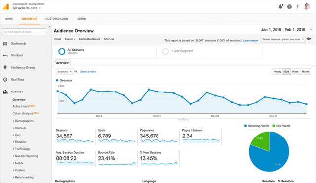 網站分析工具十分重要,Google Analytics(分析)適用于復雜的分析。如你所料,Google Analytics(分析)可輕松地與其他Google資源(例如AdWords,Search Console,DoubleClick以及最近的Firebase)整合。雖然Google Analytics(分析)免費版有一些限制,但功能強大,足以滿足中小型企業的需求。
