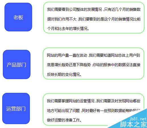 產(chǎn)品需求只有直戳用戶痛點(diǎn)才能很好的被用戶所接受,獲得產(chǎn)品的成功。而作為數(shù)據(jù)分析師則要懂得根據(jù)不同部門的需求制定不同的分析報(bào)告,從而實(shí)現(xiàn)部門之間的有效溝通,提高效率。