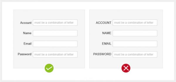 2、英文標(biāo)簽避免全部大寫(xiě)一些英文界面的表單設(shè)計(jì),我們要避免標(biāo)簽的全大寫(xiě)。全部大寫(xiě)的標(biāo)簽容易造成閱讀和瀏覽上的困難。