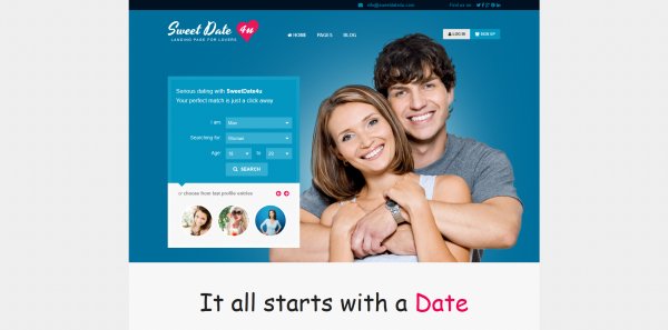 SweetDate是個(gè)相親網(wǎng)站,視覺上強(qiáng)調(diào)擇偶需求表單,讓用戶快速提交、進(jìn)入體驗(yàn)。