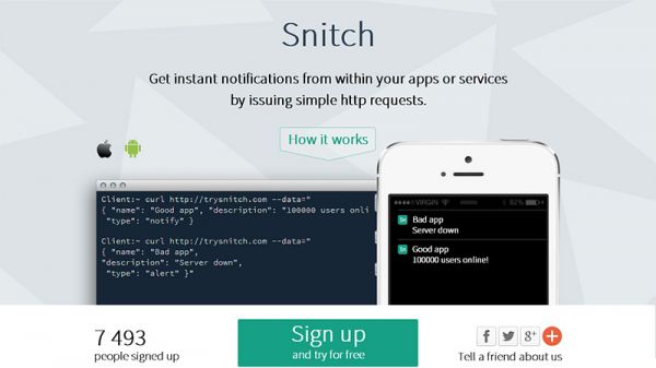 Snitch很直接的告訴潛在用戶已經(jīng)有7493個(gè)人注冊使用了哦。
