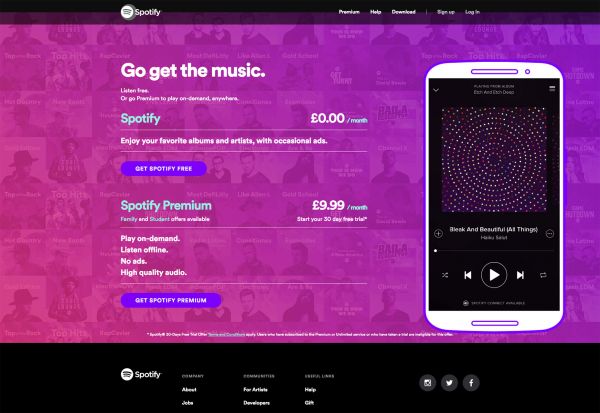 Spotify提供了30天的免費(fèi)訂閱服務(wù),來吸引用戶。