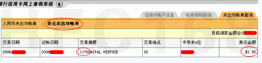 等待大約四個工作日,到你用國際信用卡開通的網上銀行去獲取激活碼。此時登入網上銀行去查詢會發現扣了1.95美元,1.95美元將來會返回到你的PayPal上。