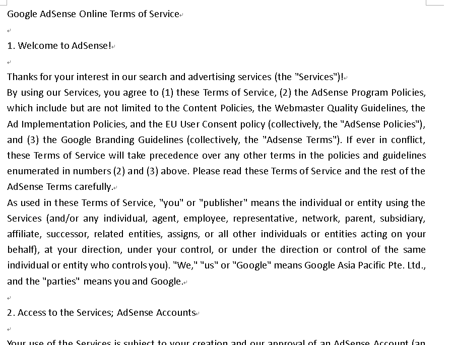 AdSense 在線服務條款(Google AdSense Online Terms of Service) 英文doc格式