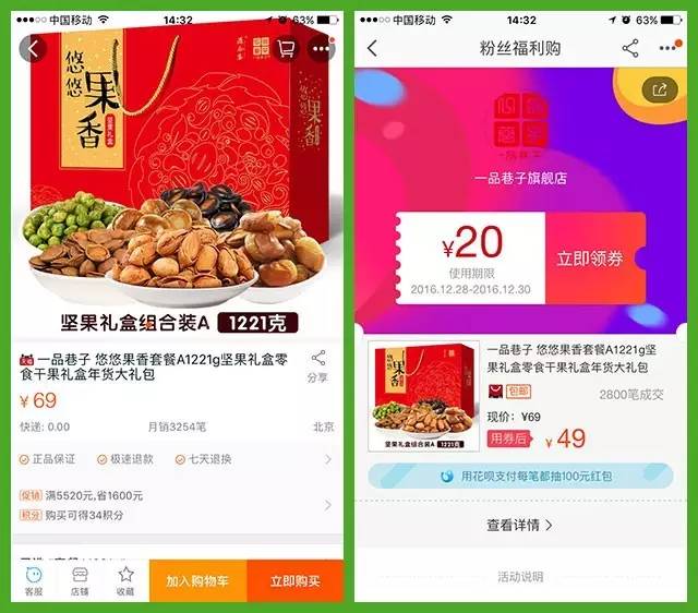 零食:圖中這家天貓店的堅(jiān)果零食,你自己去天貓店買需要69元,而可以領(lǐng)到20元內(nèi)部優(yōu)惠券,也就是說只需要49元就可以購買到這份堅(jiān)果禮盒組合裝!