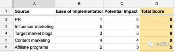 給每個渠道以 5 分制設定分數,如下所示: