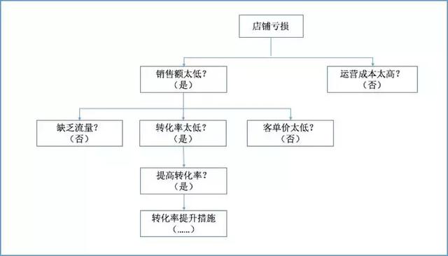 根據上述的假設思路,我們可以得出,在成本合理的情況下,店鋪出現了虧損,那么可以得出是銷售額太低,銷售額不高額影響原因是流量轉化率低。因此針對這種情況我們要做的就是提高店鋪的轉化率。