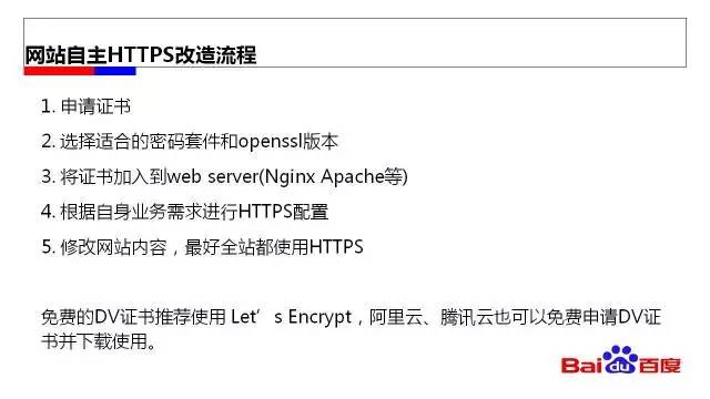 總結(jié)以上兩種方案,自己做HTTPS的改造可以貼合自己的業(yè)務(wù)做定制,比較靈活,問(wèn)題是對(duì)技術(shù)能力要求高,成本和復(fù)雜度也很高,如果網(wǎng)站業(yè)務(wù)比較特殊的可以選擇自己做。