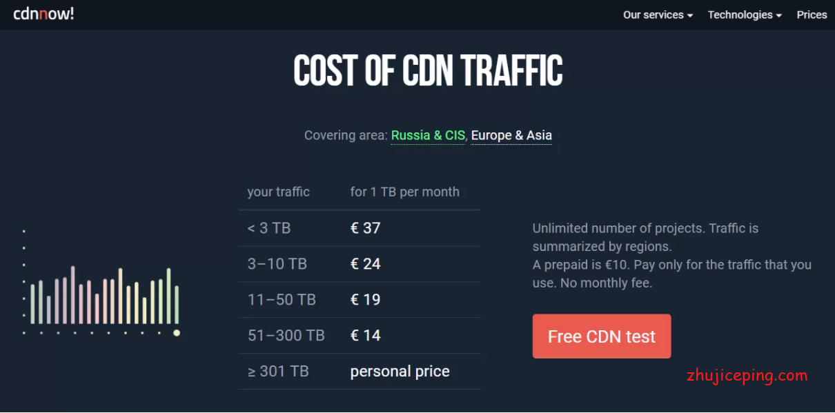 大型提供商,網(wǎng)絡(luò)能做到500Gbps,在俄羅斯和獨(dú)聯(lián)體內(nèi)接入了33個(gè)pop節(jié)點(diǎn)。在他們網(wǎng)站上,你會(huì)發(fā)現(xiàn)1~3T流量之間,單價(jià)約為37歐元,而inxy只需要25美元/T;50T流量的時(shí)候,單價(jià)每T19歐元,而inxy只要13美元。