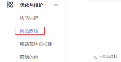 2:選擇你要做 301 的站點(diǎn),選擇網(wǎng)站改版。