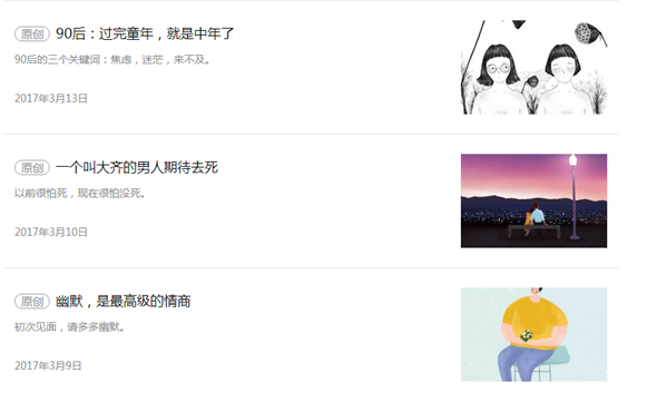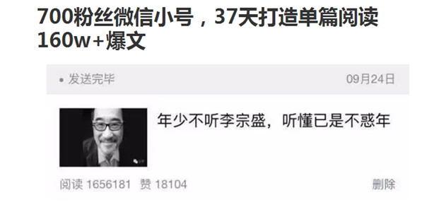 現(xiàn)在人都缺乏認(rèn)同感,總覺不被別人理解,但是讀到一些陳年?duì)€雞湯,立馬感同身受,多年不被人理解的小委屈終于有人說(shuō)透了,終于被人理解了,然后一個(gè)個(gè)傲嬌的想著“我要轉(zhuǎn)發(fā)讓別人了解我的感受”。這就是為什么近些年來(lái),公眾號(hào)10+閱讀的文章很多都是雞湯文。一個(gè)典型,一個(gè)不足千粉的小號(hào)打造了一篇《年少不聽李宗盛,聽懂已是不惑年》的爆文,但筆者看來(lái),也就是新瓶裝舊雞湯,讓多少老爺們兒矯情了一把“都沒(méi)人懂我的情懷,這篇文章說(shuō)中了,我轉(zhuǎn)!”,一不小心就爆了。