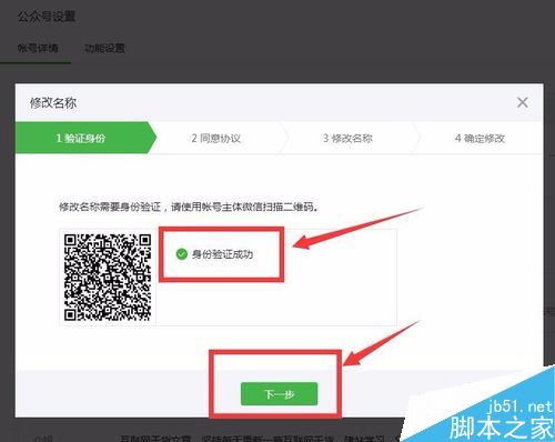 當我們點擊修改名稱的時候,這時候就會跳出了一個頁面來,首先要我們用微信(管理員的私人微信)掃描驗證!