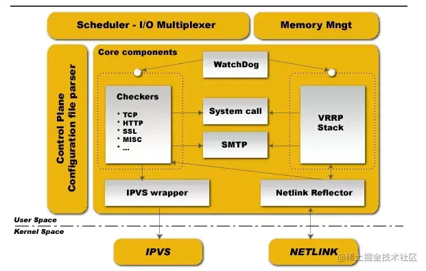 兩個子進程都被系統watchlog看管,Healthcheck子進程檢查各自服務器的健康狀況。