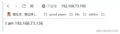[root@localhost ~]# yum -y install nginx[root@localhost ~]# cd /usr/share/nginx/html/[root@localhost html]# mv index.html index.html.back[root@localhost html]# echo "I am 192.168.73.136" > index.html[root@localhost html]# systemctl start nginx[root@localhost html]# curl 192.168.73.136I am 192.168.73.136