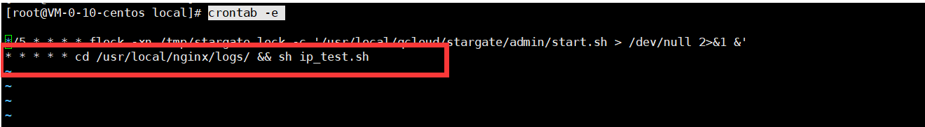 crontab -e * * * * * cd /usr/local/nginx/logs/ && sh ip_test.sh 每一分鐘運行一次systemctl restart crond.service 重啟一下配置既可