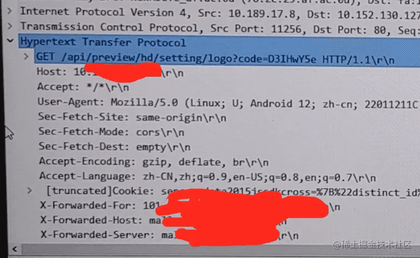 于是,在服務器上通過tcpdump抓包,看看Apache帶過來了什么東西。