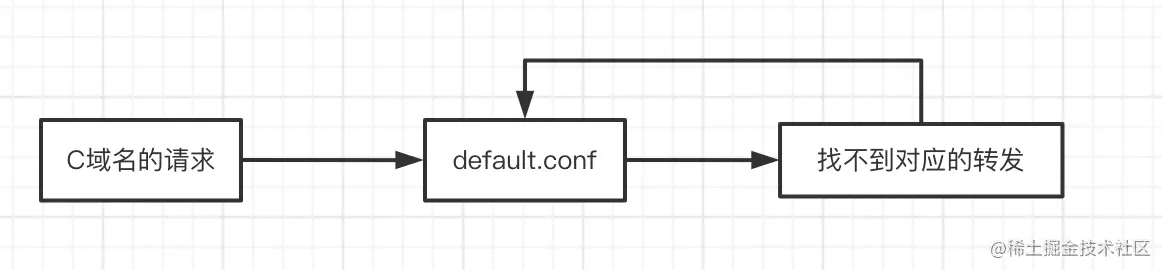 因為只有A域名和B域名的配置,沒有其他域名的配置,所以其他域名又會到default.conf里,如此就產生了死循環,既然找到了原因,那就好辦了繼續改吧。