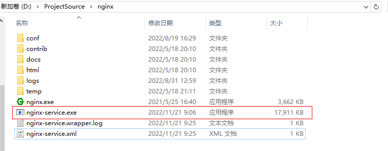 <service> <id>nginx</id> <name>nginx</name> <description>nginx</description> <logpath>D:\ProjectSource\nginx</logpath> <logmode>roll</logmode> <depend></depend> <executable>D:\ProjectSource\nginx\nginx.exe</executable> <stopexecutable>D:\ProjectSource\nginx\nginx.exe -s stop</stopexecutable></service>