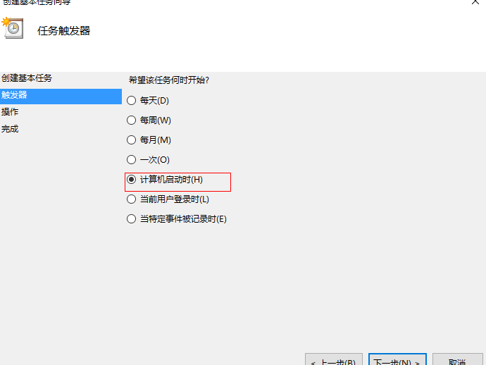 4、將觸發設定為開機自啟動