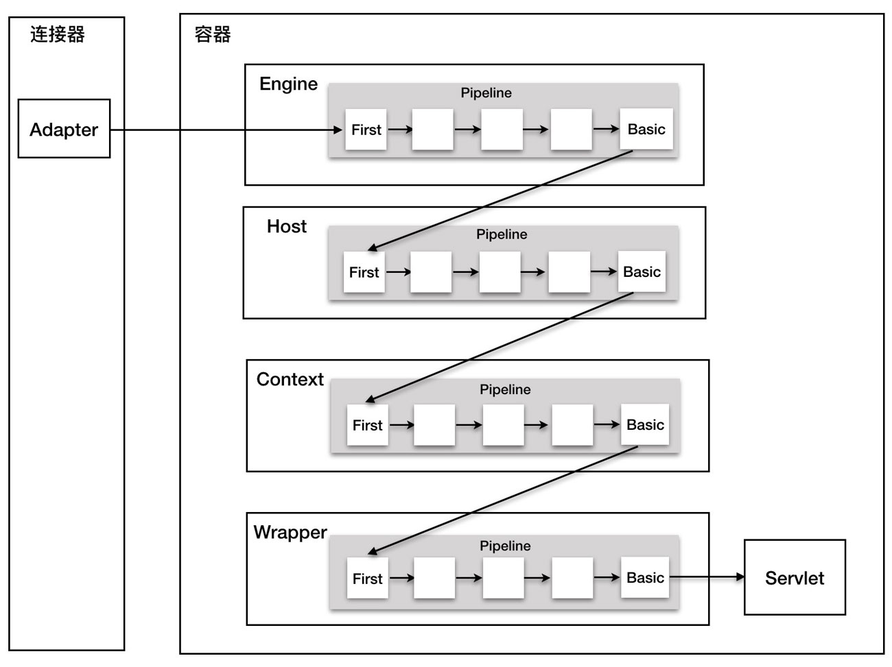 - Container: 多個(gè)連接器對(duì)應(yīng)一個(gè)容器,頂層容器其實(shí)就是 Engine。