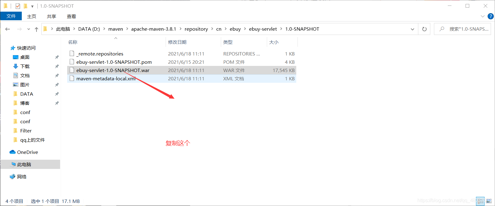 然后,進入進入到你的maven倉庫的目錄下,找到打好的包(不知道你的倉庫目錄的可以去)