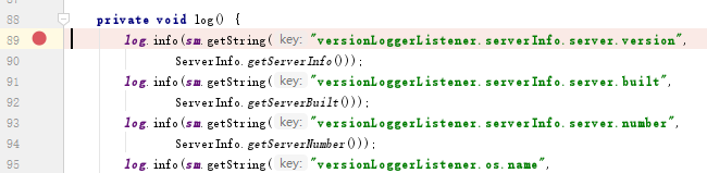 找到org.apache.catalina.startup.VersionLoggerListener類的log()方法,打斷點一步一步跟蹤