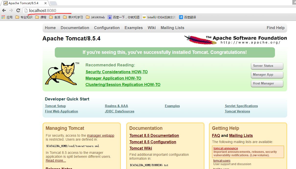 之后再點(diǎn)擊運(yùn)行startup.bat或者tomcat9.exe(運(yùn)行后不關(guān)閉),在瀏覽器輸入localhost以及l(fā)ocalhost:8080即可看到相應(yīng)界面