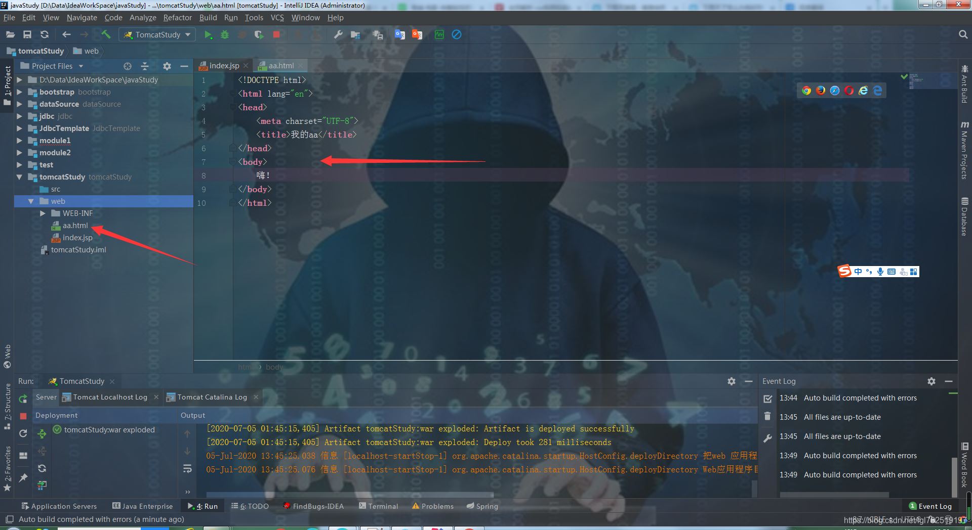 上面我們加了一個aa.html頁面,需要從新啟動項目,是不是很麻煩,下面我們配置一下熱部署