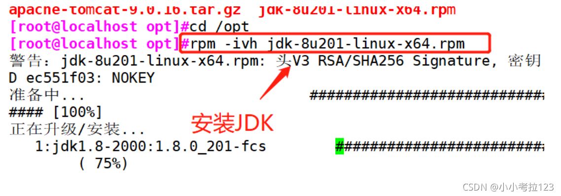 1. #關(guān)閉防火墻 systemctl stop firewalldsystemctl disable firewalldsetenforce 0 2. #將安裝 Tomcat 所需軟件包傳到/opt目錄下apache-tomcat-9.0.16.tar.gz jdk-8u201-linux-x64.rpm 3. #切換至/opt下,安裝JDKcd /optrpm -ivh jdk-8u201-linux-x64.rpm ?4. #查看java版本java -version