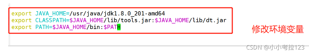 vim /etc profile?export JAVA_HOME=/usr/java/jdk1.8.0_201-amd64export CLASSPATH=$JAVA_HOME/lib/tools.jar:$JAVA_HOME/lib/dt.jarexport PATH=$JAVA_HOME/bin:$PATH