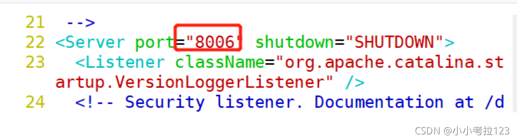 vim /usr/local/tomcat/tomcat2/conf/server.xml ?22 <Server port="8006" shutdown="SHUTDOWN">69 ? ? <Connector port="8081" protocol="HTTP/1.1"116 ? ? <Connector port="8010" protocol="AJP/1.3" redirectPort="8443" />?