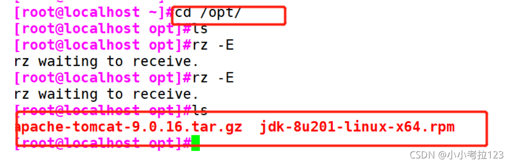 切換至opt目錄,將下載好的壓縮包傳進(jìn)來