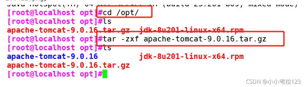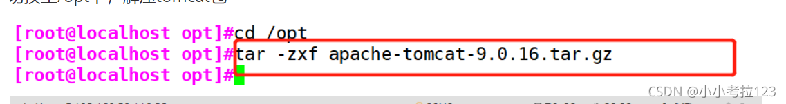 切換至/opt下,解壓tomcat包