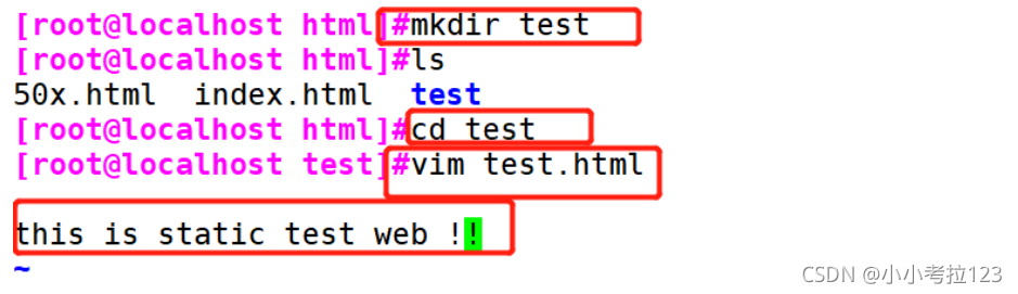 創(chuàng)建test文件夾,并在里面創(chuàng)建靜態(tài)網(wǎng)頁