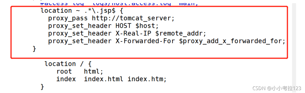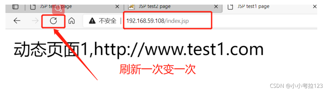 1. #切換至/usr/local/nginx/html/目錄下cd /usr/local/nginx/html/?2. #創(chuàng)建test文件夾,并在里面創(chuàng)建靜態(tài)網(wǎng)頁mkdir testcd testvim test.htmlthis is static test web !!?3. #拖一張圖片至test下改名為1.jpgmv 1.jfif 1.jpg?4. #配置主配置文件vim /usr/local/nginx/conf/nginx.conf?#配置負(fù)載均衡服務(wù)器列表,weight參數(shù)表示權(quán)重,權(quán)重越高,被分配到的概率越大 ?#gzip on; ? ? upstream tomcat_server { ? ? ? ? ? ? ? ? ? server 192.168.59.105:8080 weight=1; ? ? ? ? ? ? ? ? ? server 192.168.59.118:8080 weight=1; ? ? ? ? ? ? ? ? ? ? ? ? ? ? ? ? ? } ? ? ? ? ? ? ? ? ? ? ? ? ? ? ? ? ? ? ? ?#動靜分離 location ~ .*.jsp$ { ? ? ? ? proxy_pass http://tomcat_server; ? ? ? ? proxy_set_header HOST $host; ? ? ? ? proxy_set_header X-Real-IP $remote_addr; ? ? ? ? proxy_set_header X-Forwarded-For $proxy_add_x_forwarded_for; ? ? }?#靜態(tài)圖片正則 ? ? ? ? location ~* .*.(jpg|html|png|gif)$ { ? ? ? ? root /usr/local/nginx/html/test; ? ? }?? ? ? ? ? location / { ? ? ? ? ? root ? html; ? ? ? ? ? index index.html index.htm; ? ? }???5. ?#重啟nginx并測試http://192.168.59.108/1.jpghttp://192.168.59.108/test.html切換至cd /usr/local/nginx/html/目錄下