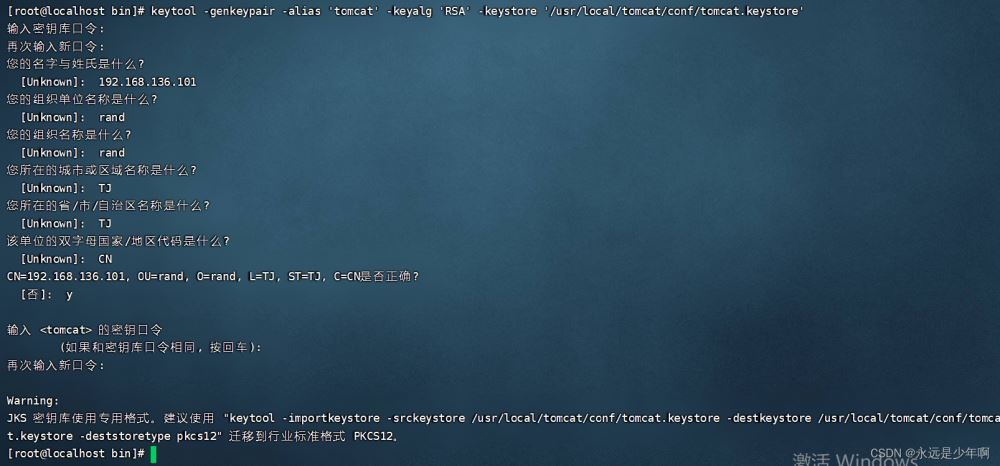 keytool -genkeypair -alias "tomcat" -keyalg "RSA" -keystore "/usr/local/tomcat/conf/tomcat.keystore"
