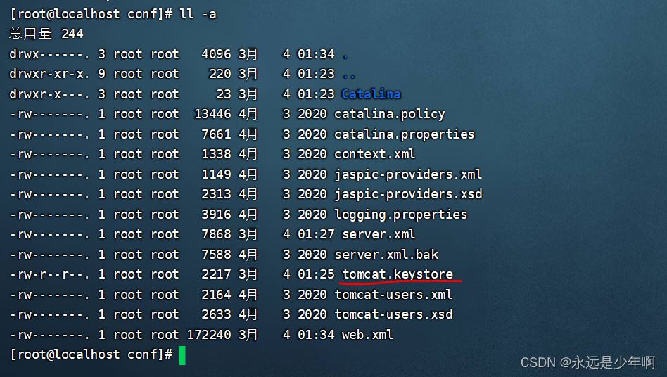這樣Tomcat的證書就完成了。在此過程中,要特別注意輸入的密碼和生成的文件路徑和名稱,在下面的配置中,我們需要使用這個證書文件,用于配置Tomcat對https的支持。